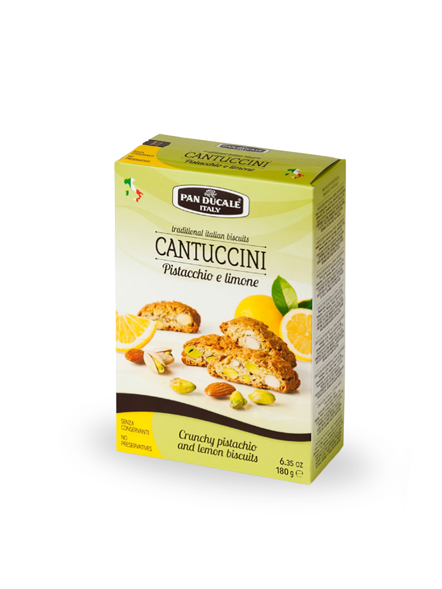 Tradycyjne włoskie ciasteczka o chrupiącej, twardej strukturze, wzbogacone pistacjami i nutą cytryny.